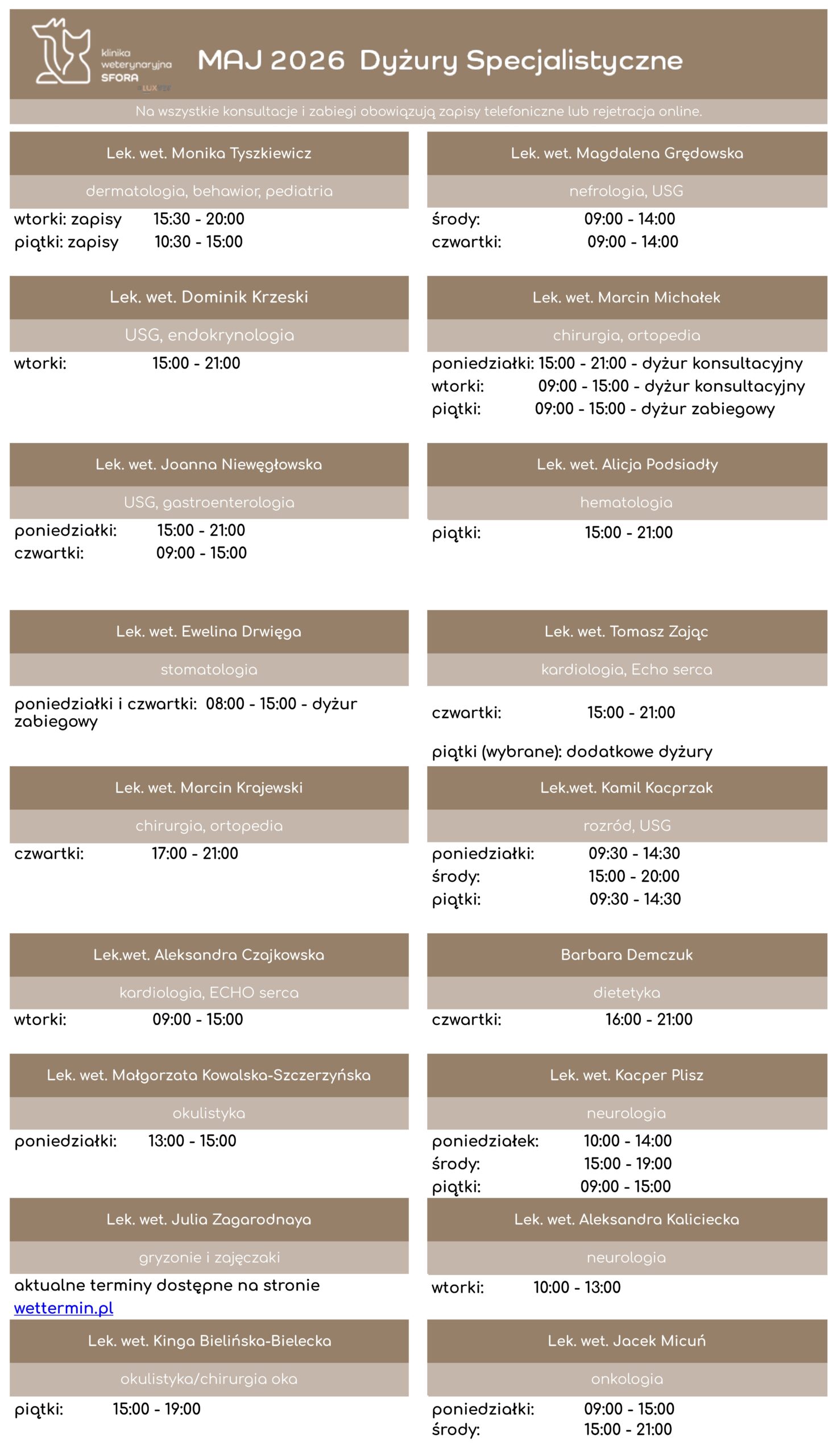 - Badania przedzabiegowe: krew (morfologia i biochemia), echo serca u starszych osobników.